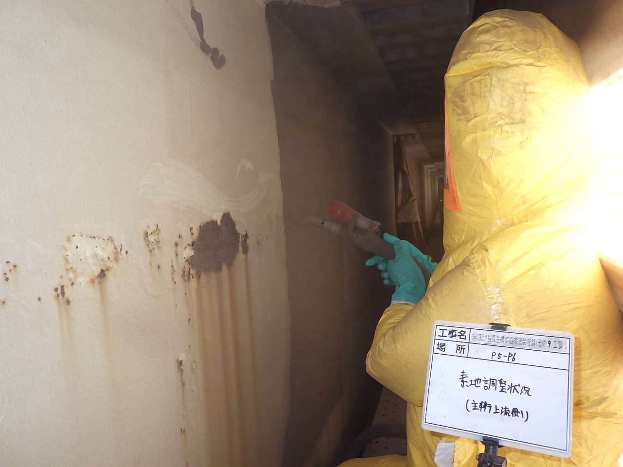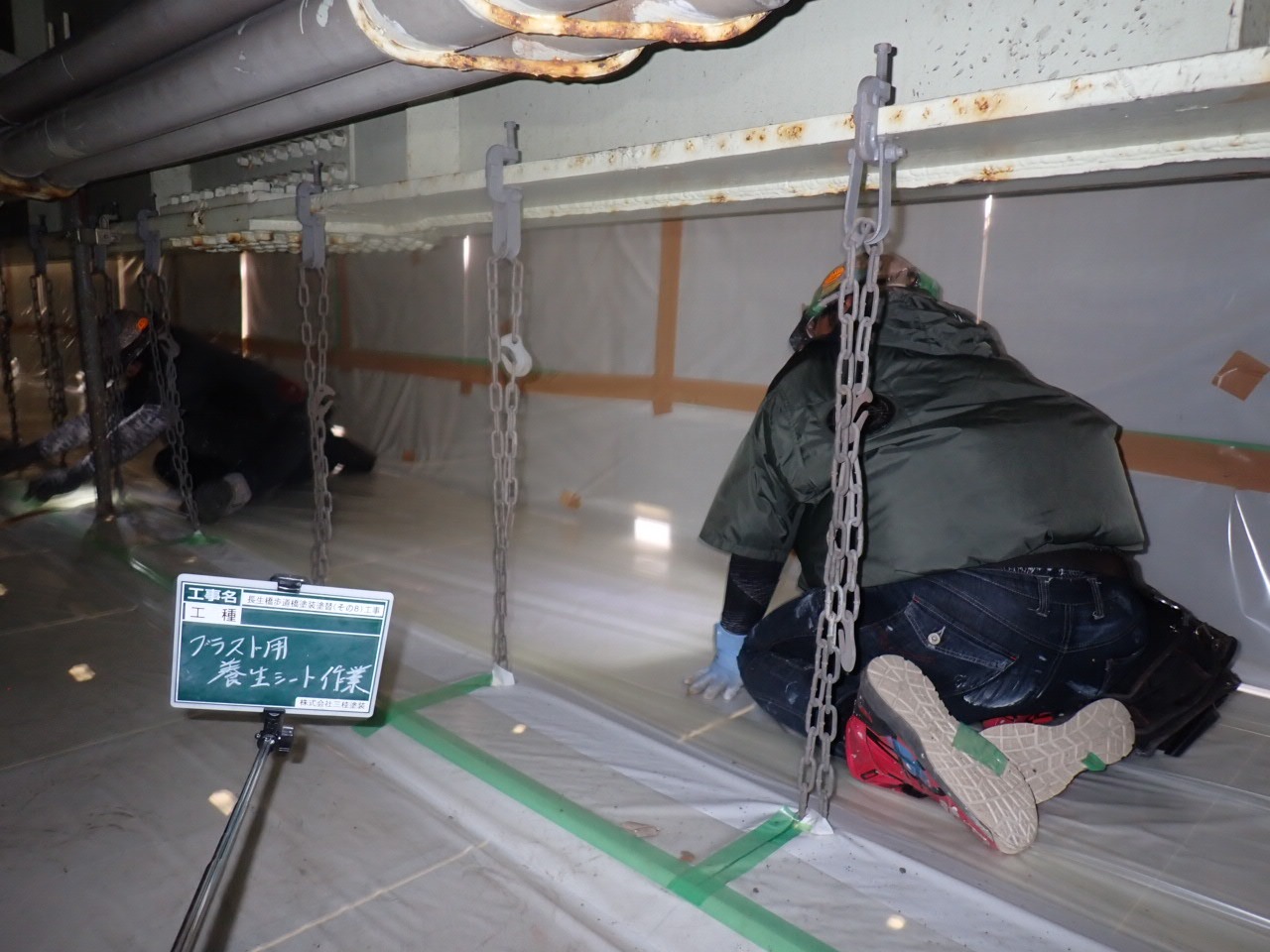 ブラスト工機械設置、素地調整確認、仮設設置物確認を行いました。