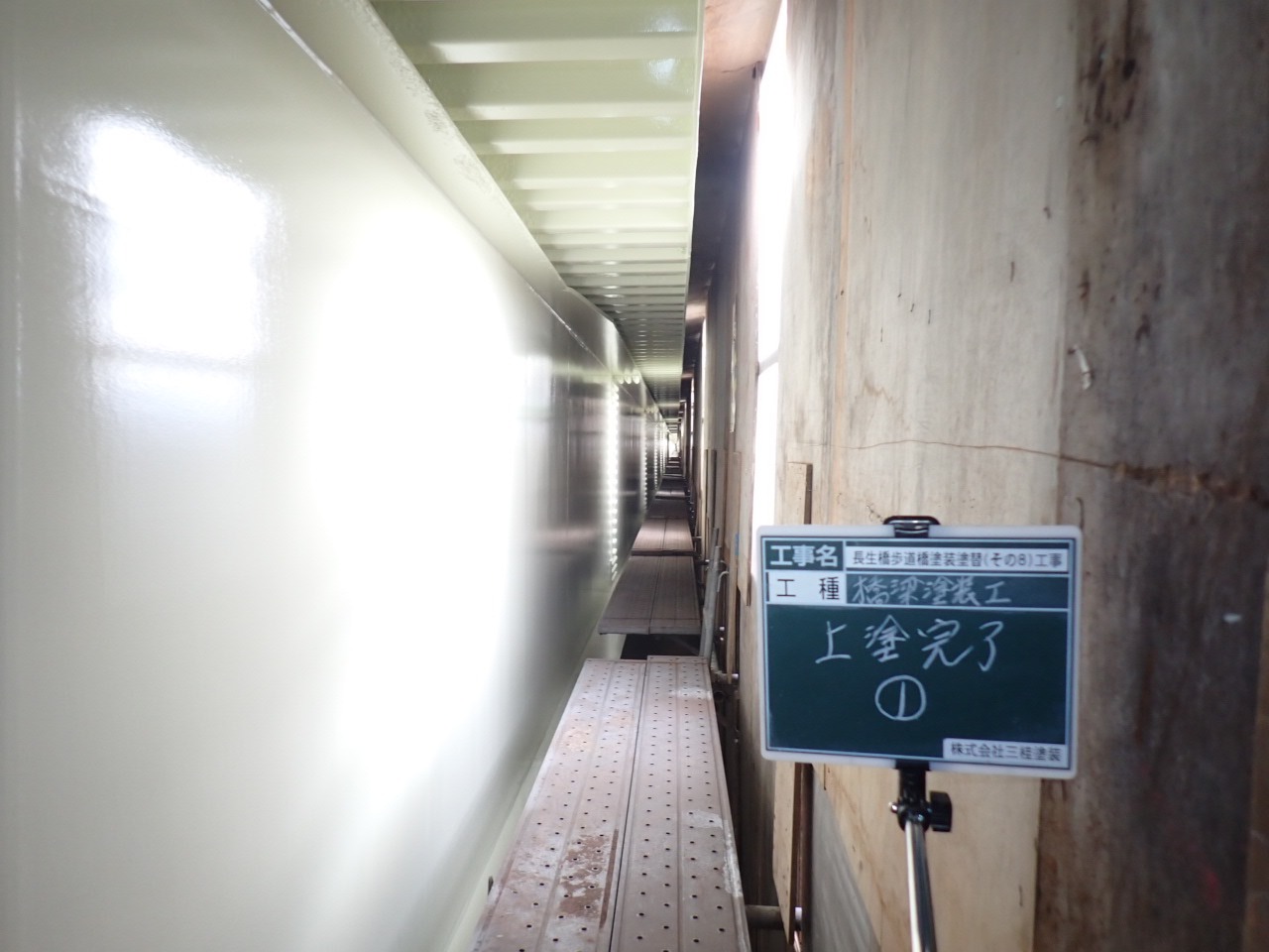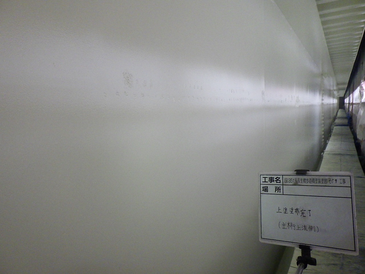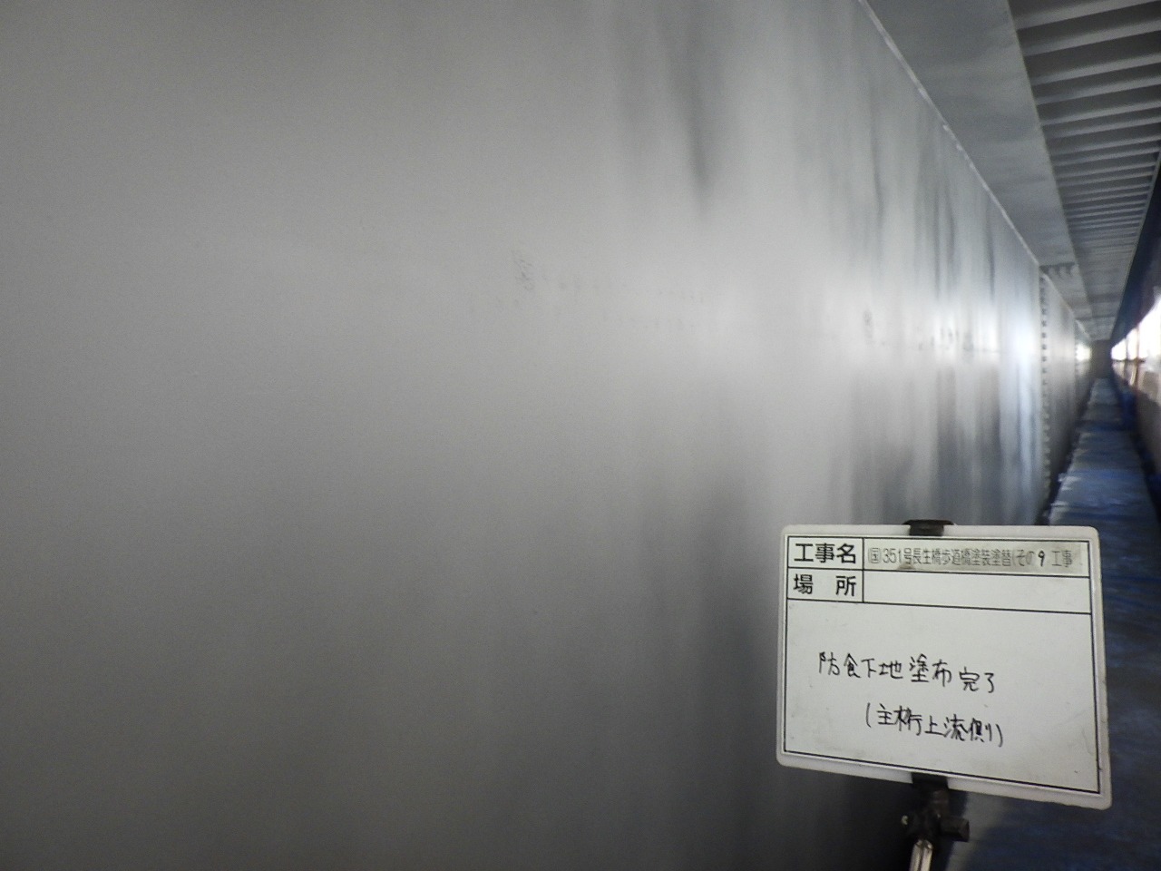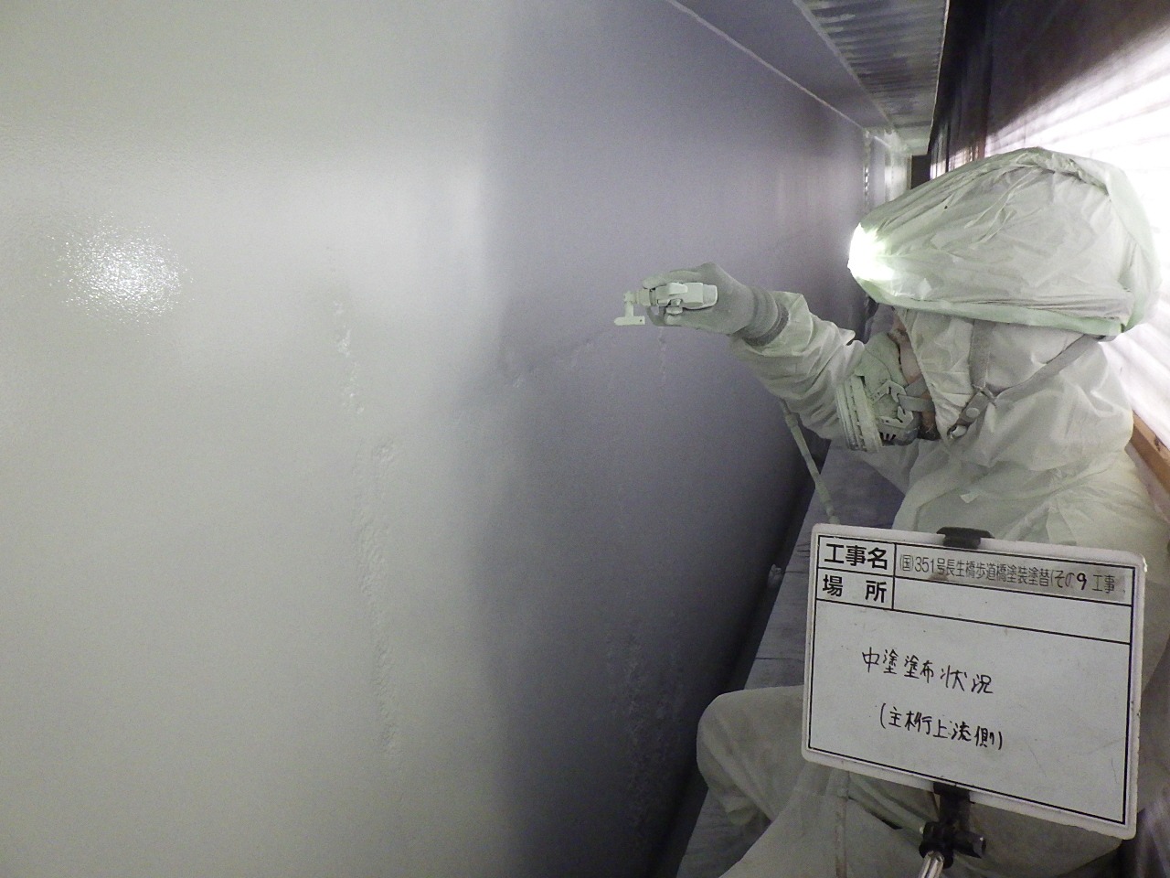 9月半ばにブラスト完了し、塗装作業を進めています。 9月末現在、全5層塗装のうち1層目の防食下地塗が完了し、2層目の下塗1層目作業を行っています。 交通規制については、9月26日に一旦車道通行止めを完了いたしました。 11月に再開予定ですので、ご迷惑をお掛けしますが、今後とも何卒ご協力の程よろしくお願いいたします。