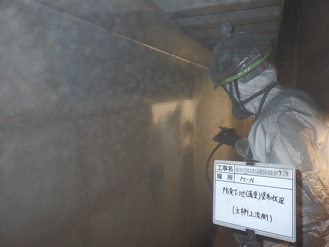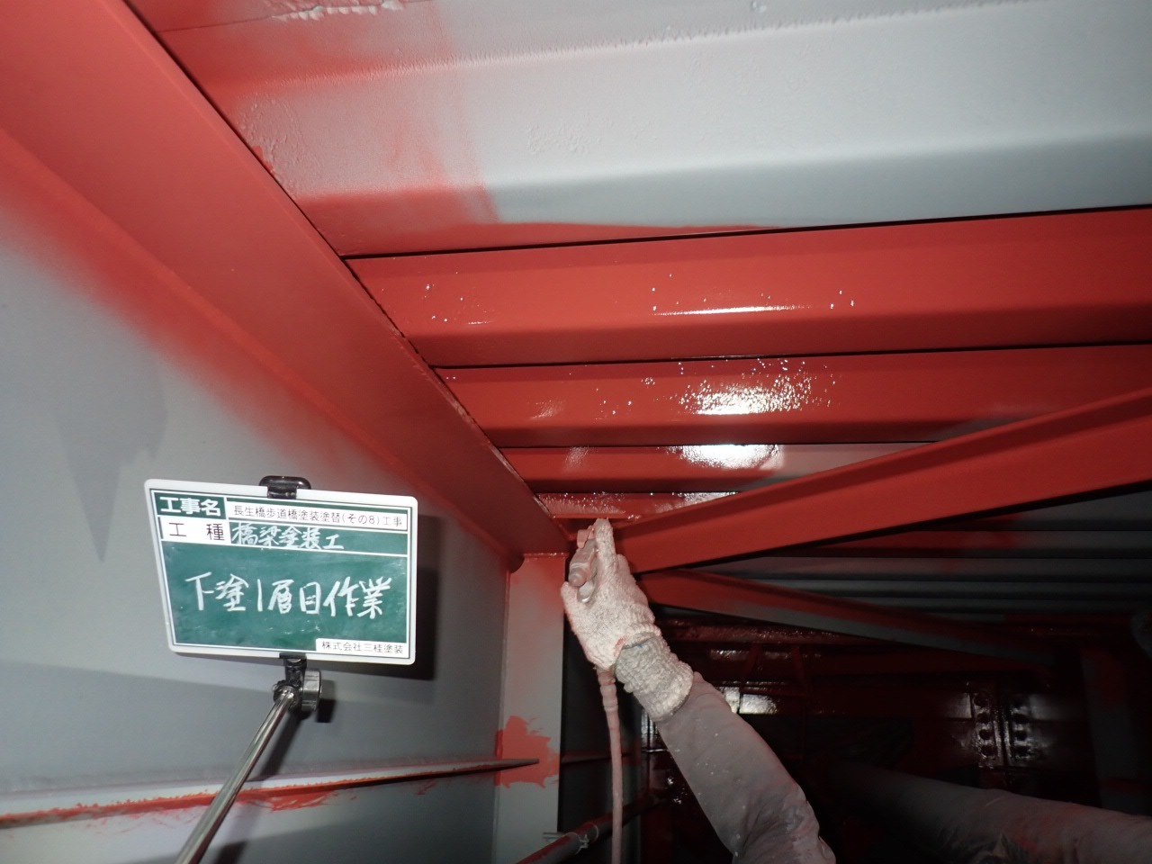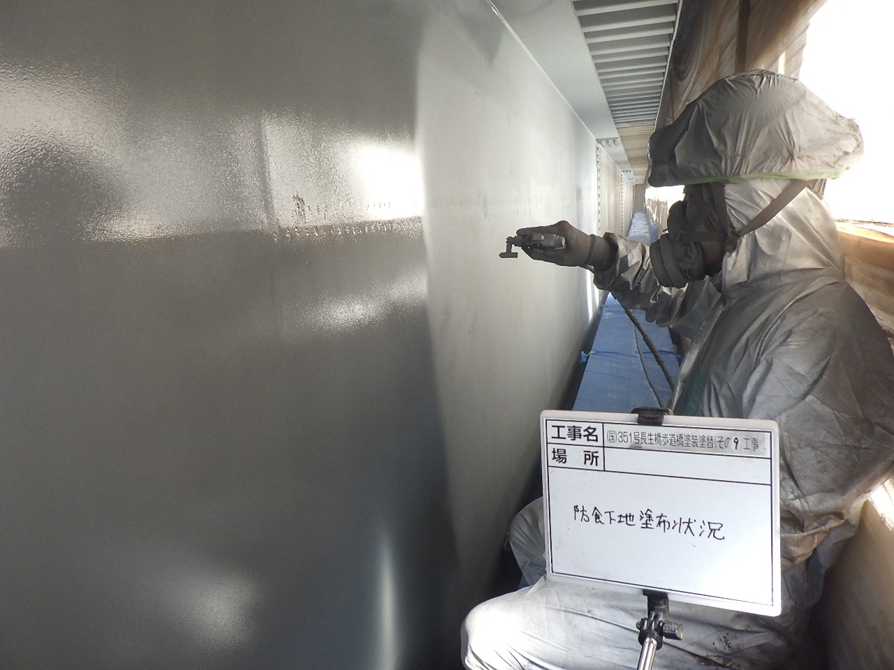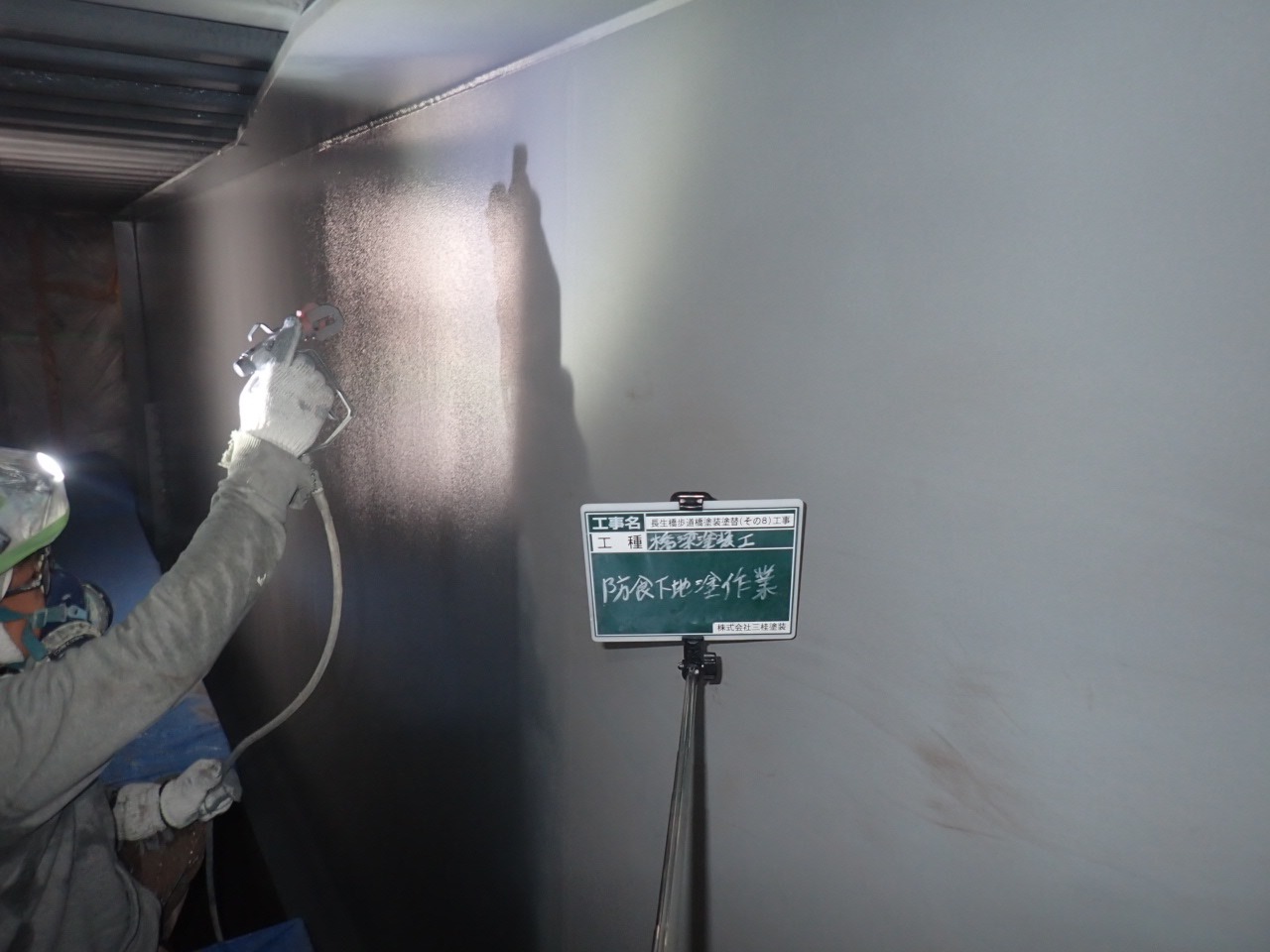 防食下地塗状況(狭小部はけ・ローラー塗)