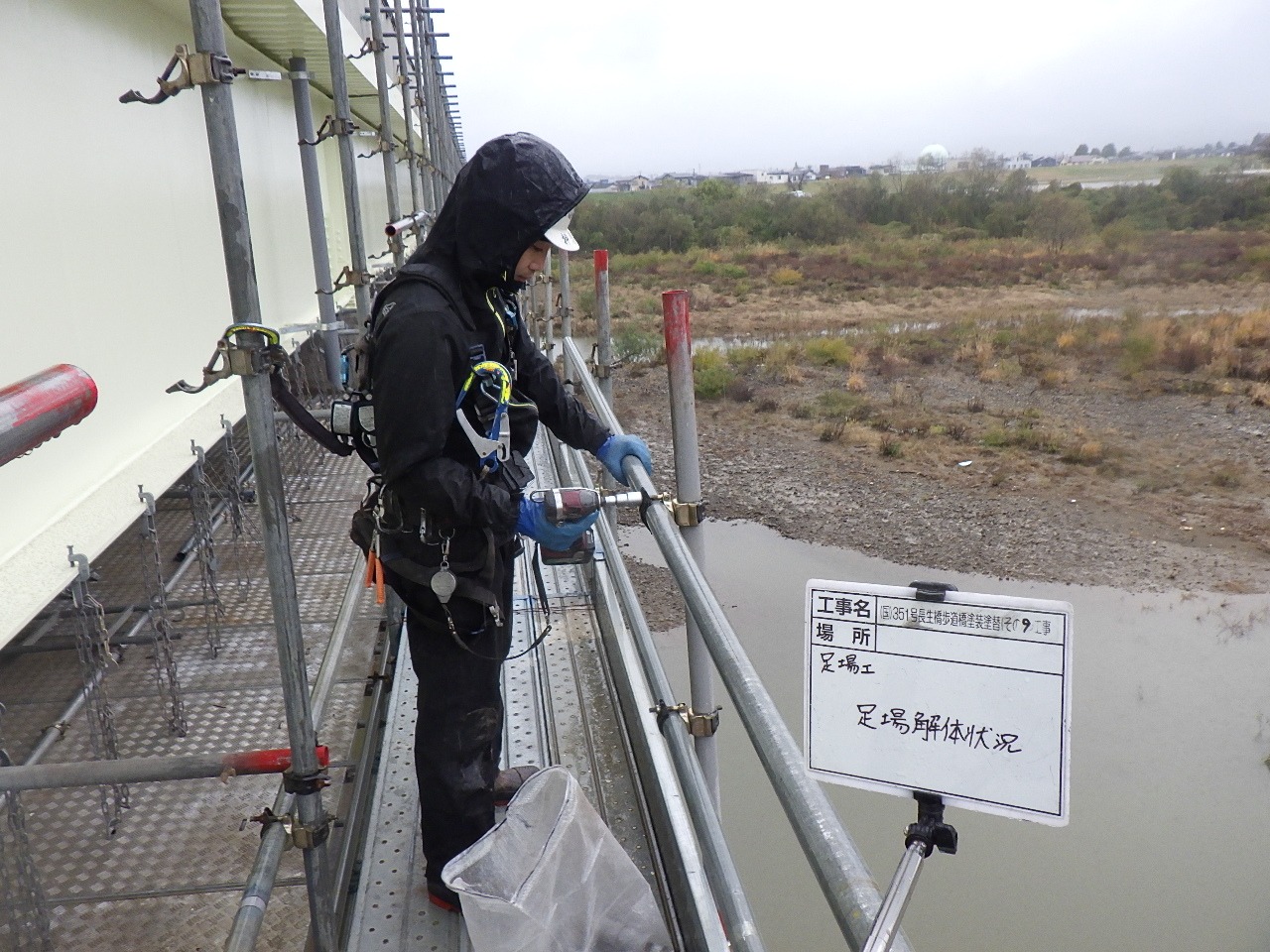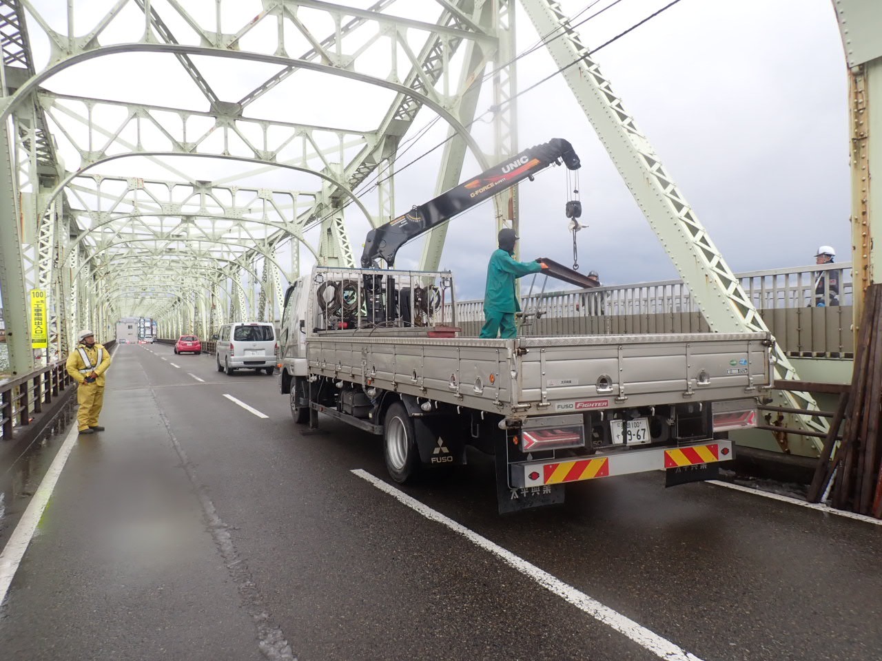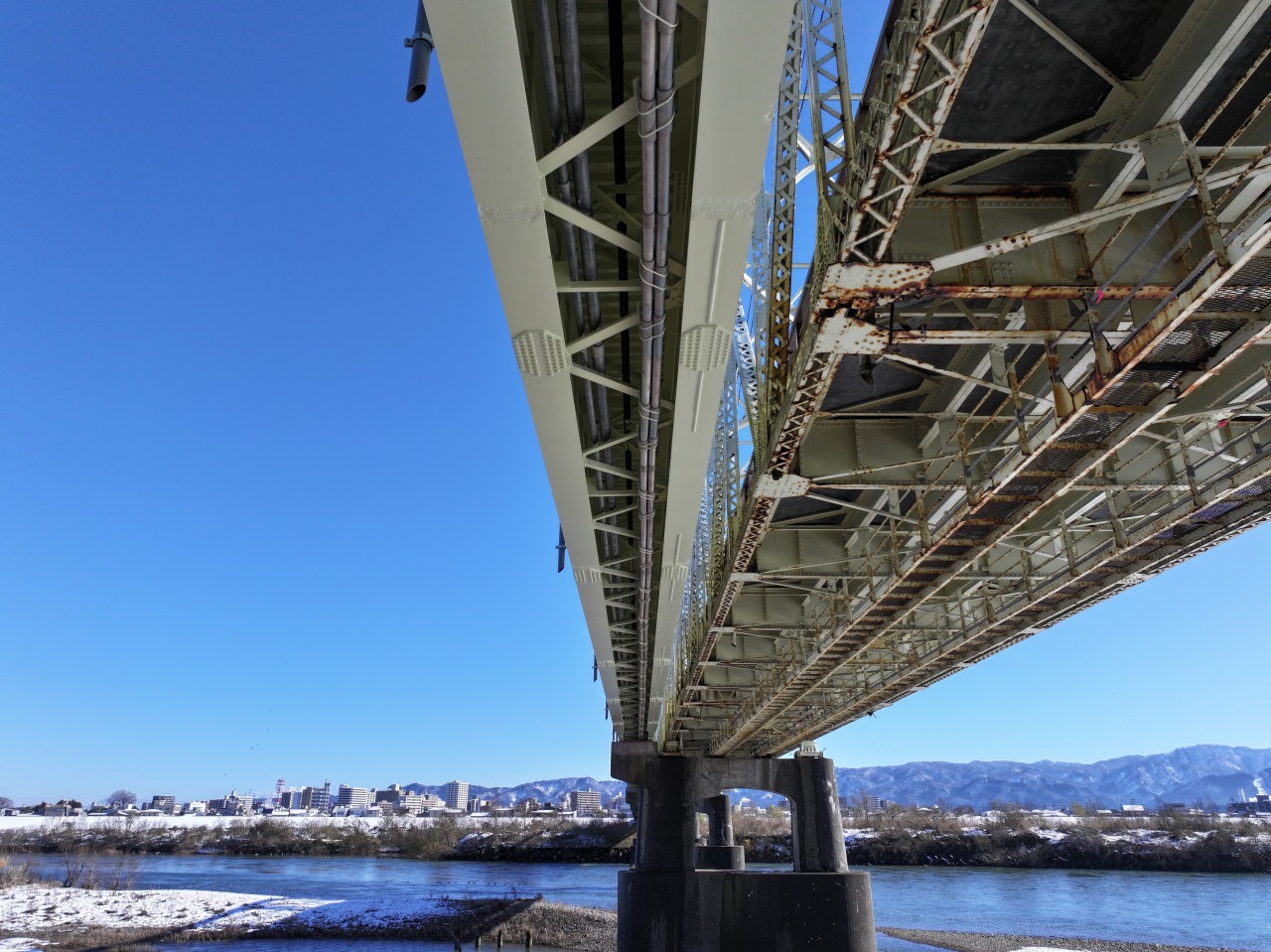 9月から引き続き塗装作業を行い、下塗2層目・中塗・上塗と進めて、10月末現在、全5層塗装完了しました。 11月初めに排水装置取替を行ない、その後に新潟県立会による現場検査があり、そこで問題がなければ足場撤去と進めていきます。 交通規制については、11月4日(火)より車道通行止めを再開いたします。 歩道についても11月半ば頃より再開予定です。歩道については通行可能です。 ご迷惑をお掛けしますが、何卒ご協力の程よろしくお願いいたします。