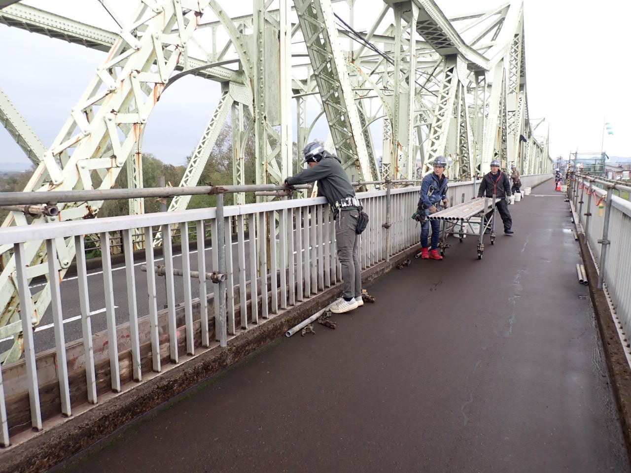 9月から引き続き塗装作業を行い、下塗2層目・中塗・上塗と進めて、10月末現在、全5層塗装完了しました。 11月初めに排水装置取替を行ない、その後に新潟県立会による現場検査があり、そこで問題がなければ足場撤去と進めていきます。 交通規制については、11月4日(火)より車道通行止めを再開いたします。 歩道についても11月半ば頃より再開予定です。歩道については通行可能です。 ご迷惑をお掛けしますが、何卒ご協力の程よろしくお願いいたします。
